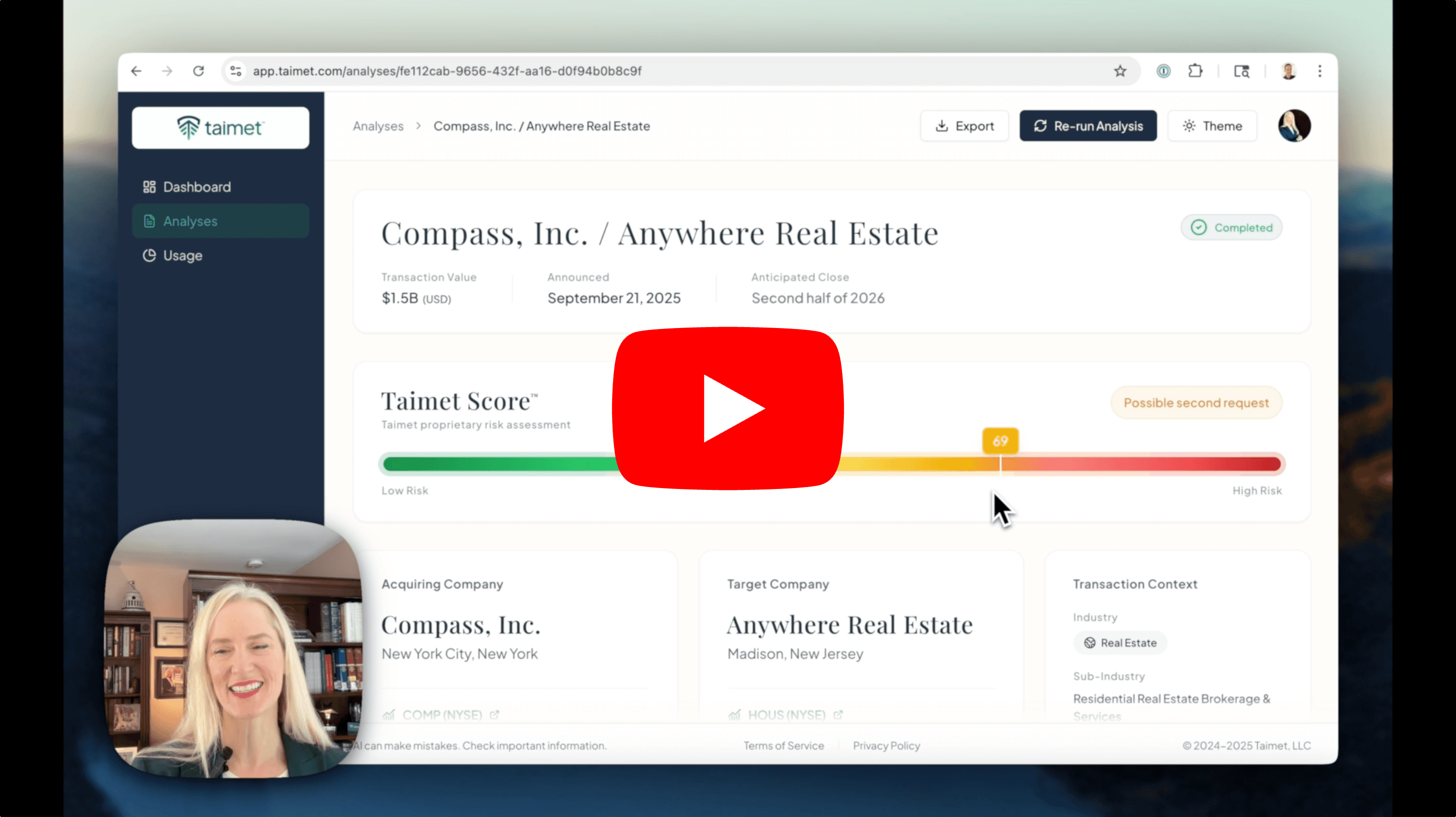With over twenty years of experience as an antitrust enforcer, Gwendolyn created the idea for Taimet borne from her practice: How could she quickly and effectively analyze mergers up to an extremely high standard? Using her extensive history reviewing merger transactions for anticompetitiveness, and her deep knowledge of the antitrust enforcement community across administrations, she and her co-founder have created a way to analyze complex mergers using artificial intelligence combined with an overlay of practical antitrust knowledge.